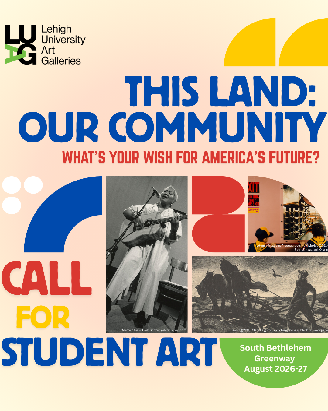Selected student artwork will be reproduced and displayed along the South Bethlehem Greenway from August 2026 to June 2027 as part of This Land: Reimagining The United States of America on its 250th Anniversary, on view at the Lehigh University Art Galleries (LUAG). A selection of artworks will also be available on the LUAG’s website.