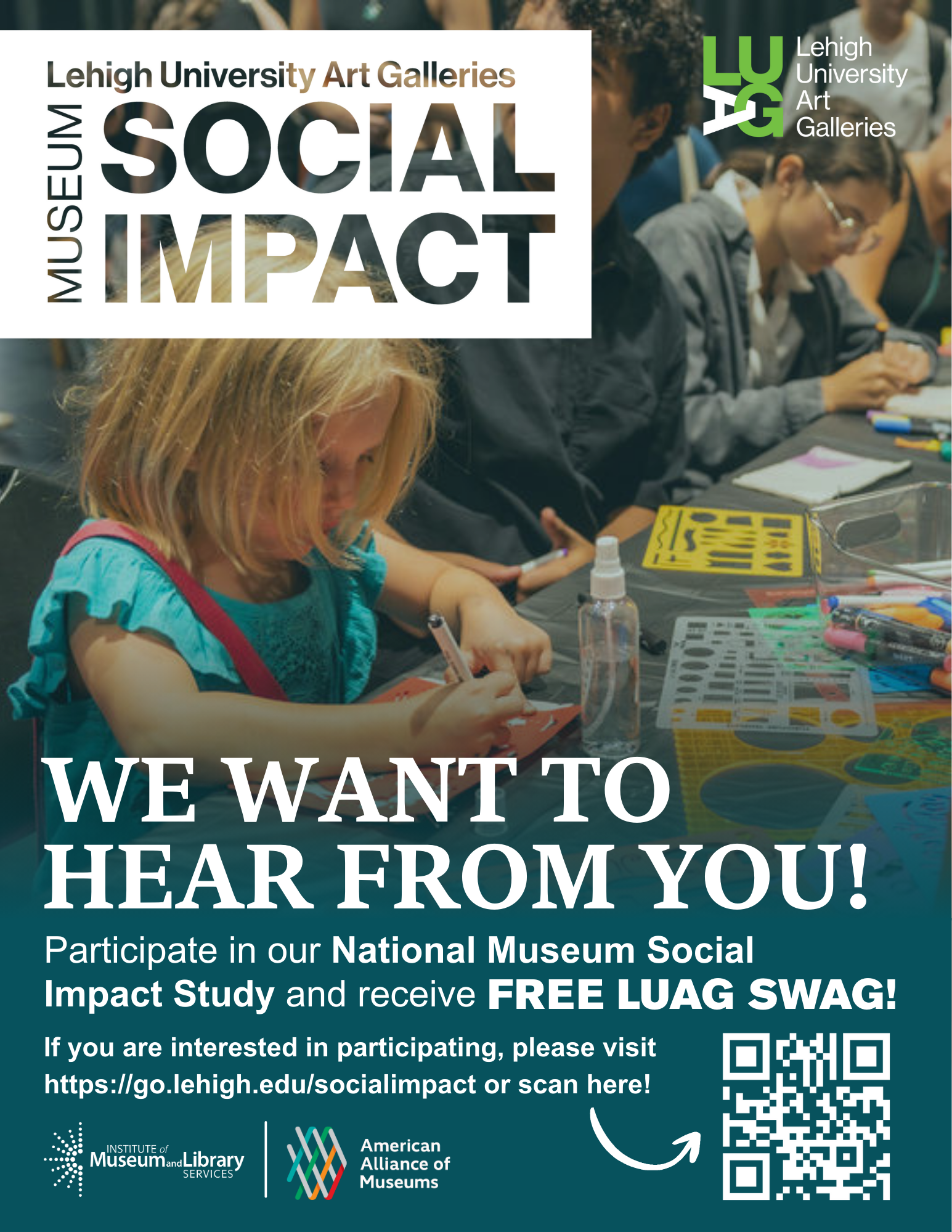 Lehigh University Art Galleries (LUAG) is participating in the nationwide Museum Social Impact in Practice (MSIIP) study, led by the American Alliance of Museums and funded by the Institute of Museum and Library Services.
